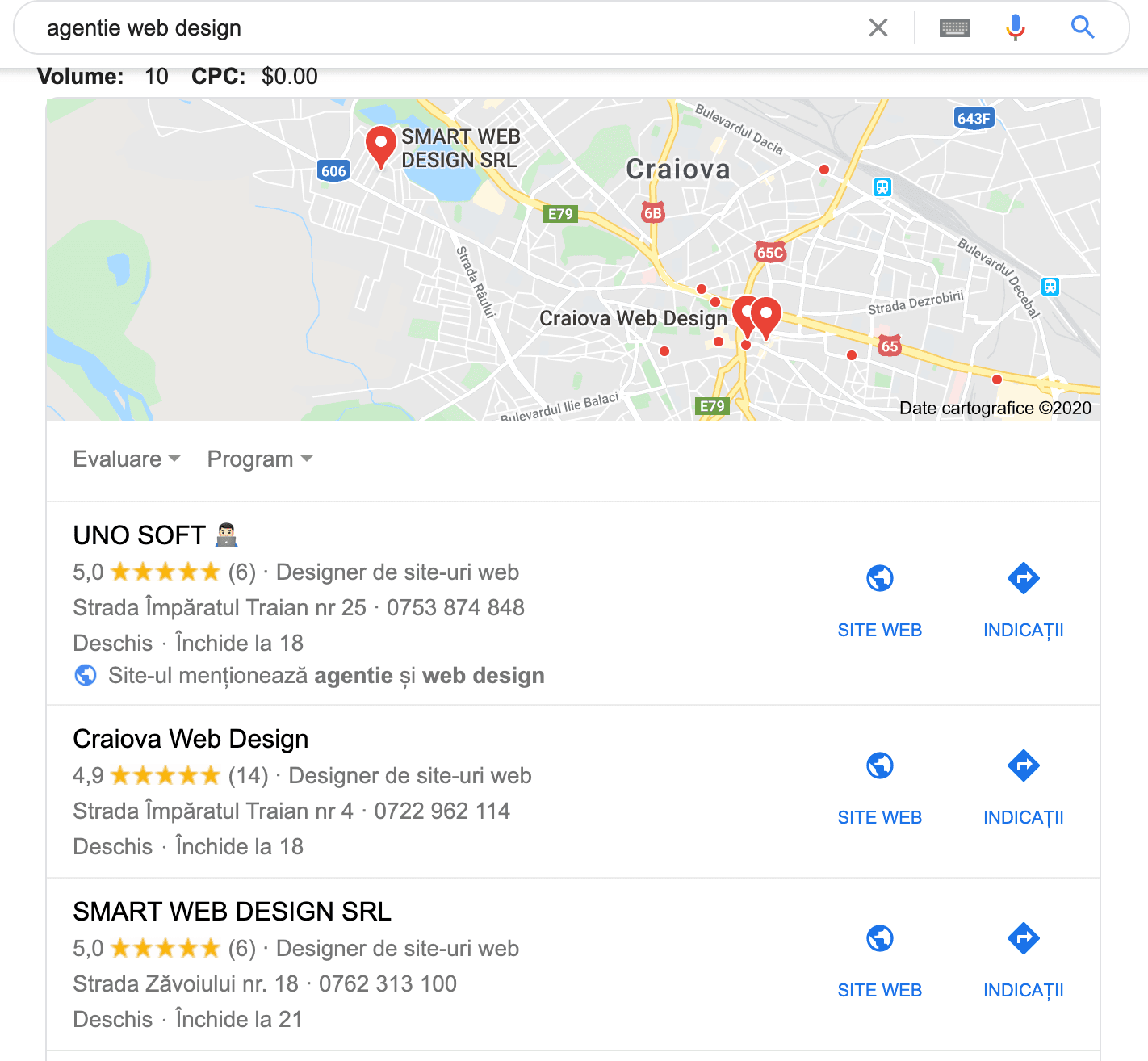 Atunci cand un utilizator cauta un serviciu sau o firma locala Google iti va arata rezultate locale din „Compania mea pe Google”