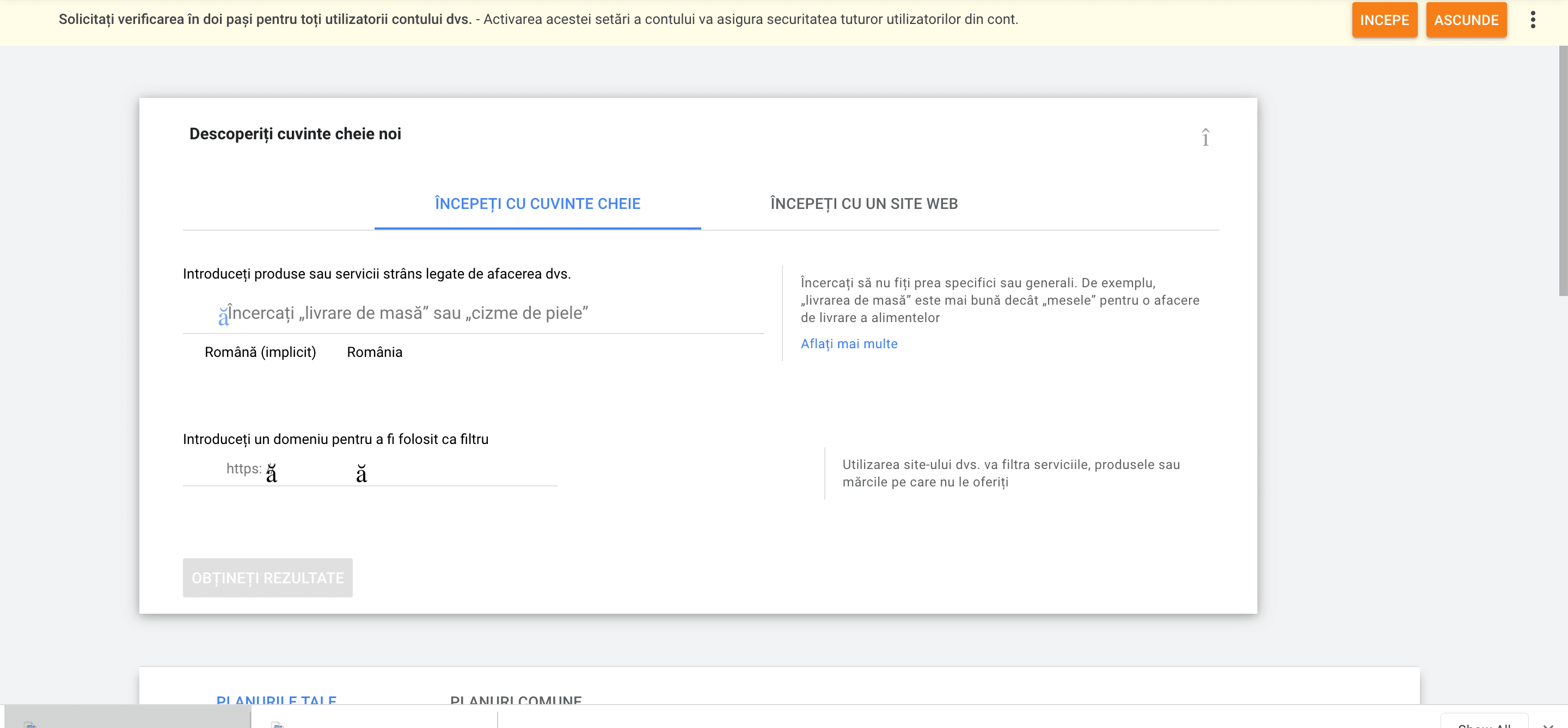 Acum ca am aceste cuvinte cheie de inceput, ma duc cu ele in instrumentul oferit de Google si le testez in platforma.